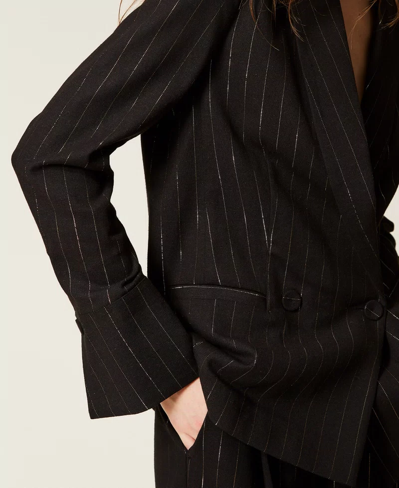 • 37% poliestere 36% viscosa 20% cotone 6% lino 1% poliestere metallizzato. Fodera: 37% poliestere 36% viscosa 20% cotone 6% lino 1% poliestere metallizzato